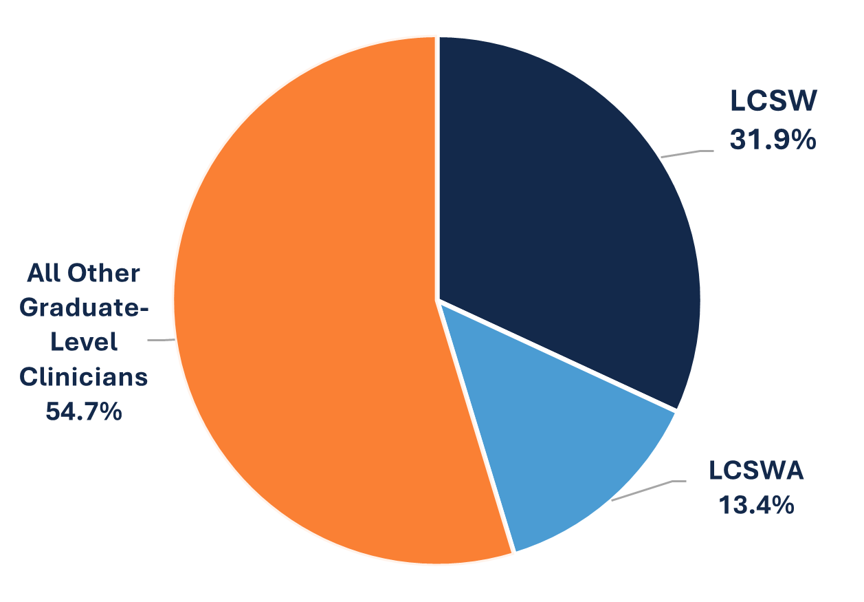 Suggested Citation: Lombardi BM, Headley J, Jimenez MP; Keesler R, Akue-ka AJB; Gregory R; Galloway E; Zerden LD; Fraher E. North Carolina Mental Health & Substance Use Services Workforce Data Snapshot 2024: Social Work (Licensed Clinical Social Workers & Associates). Program on Health Workforce Research and Policy. Cecil G. Sheps Center for Health Services Research. The University of North Carolina at Chapel Hill. March 25, 2026.